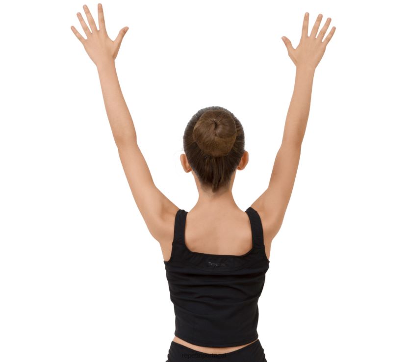 top preto sem mangas para jovem dançarina. alças largas e decote redondo. transferência do logotipo do repetto. aspecto mate.