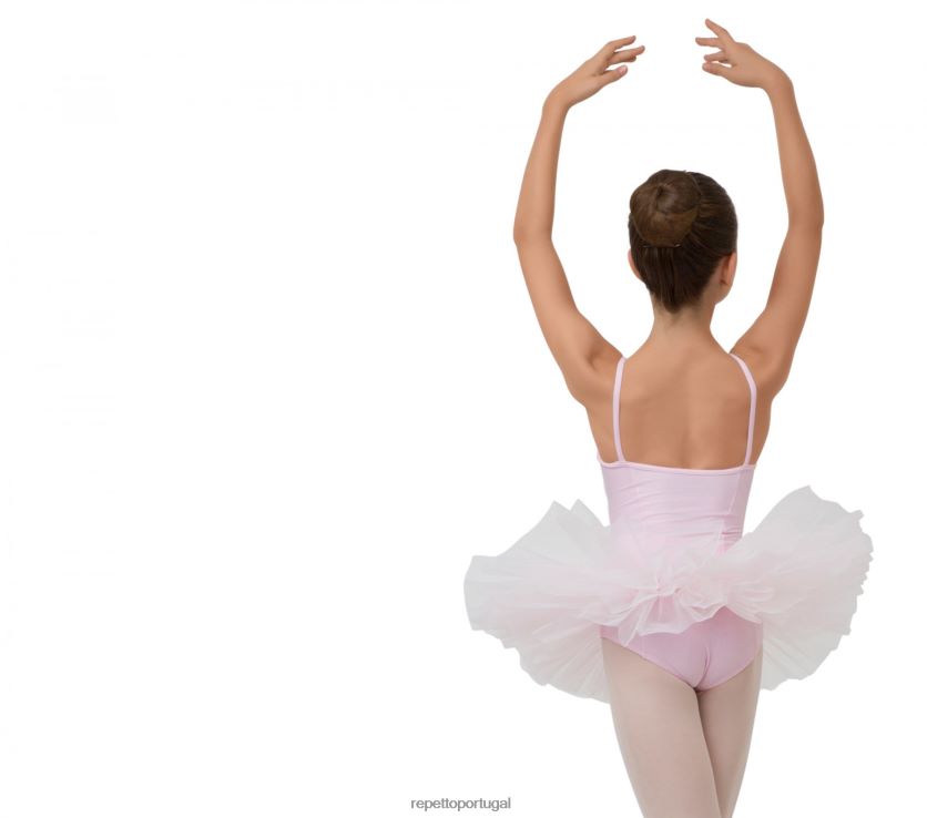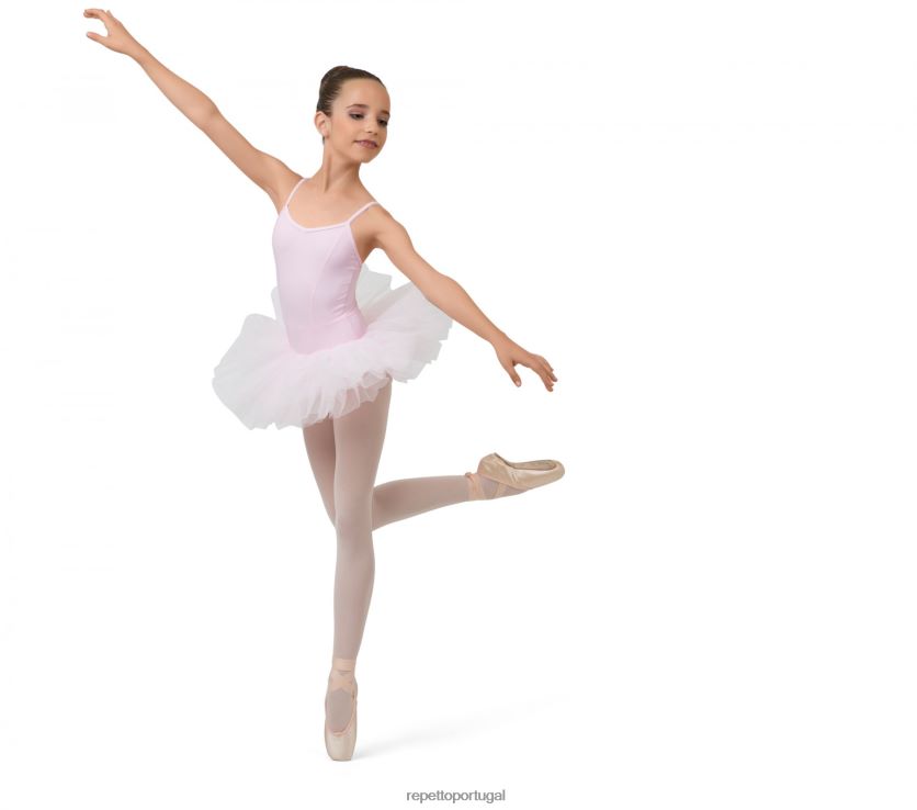 o tutu da baixinha é emblemático do tutu da primeira jovem dançarina. as alças finas e o estilo espartilho com costura princesa enfatizam a silhueta da bailarina. as quatro camadas de tule reto e curto dão formato de bola ao tutu. forro frontal. transferência transparente do logotipo do repetto nas costas.