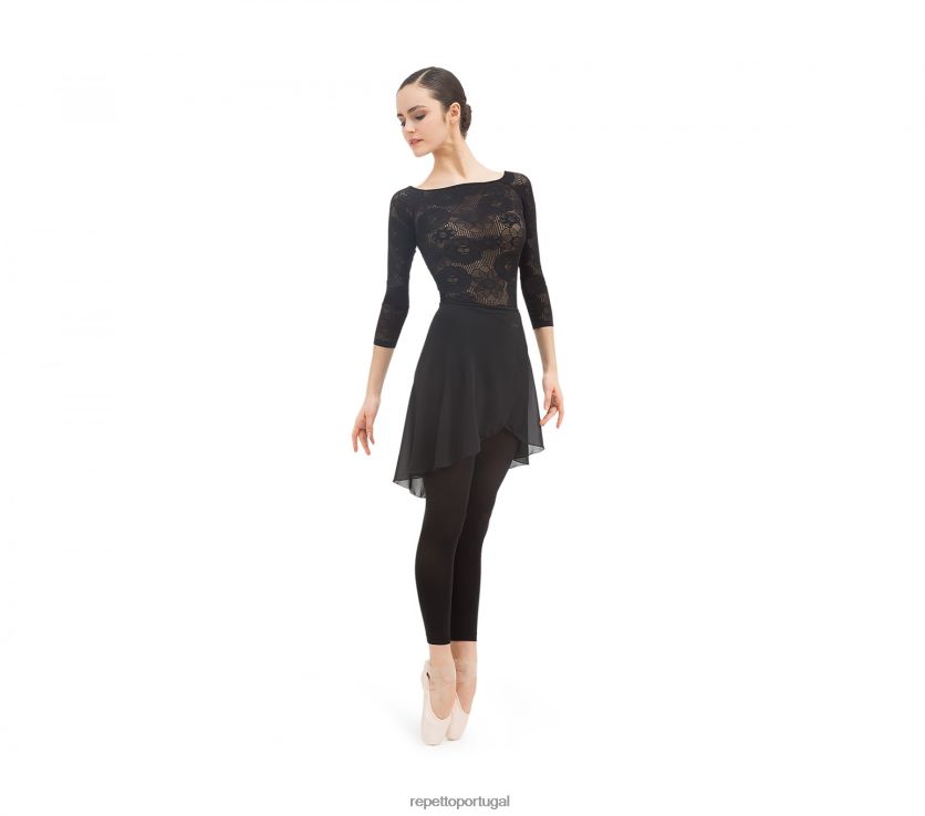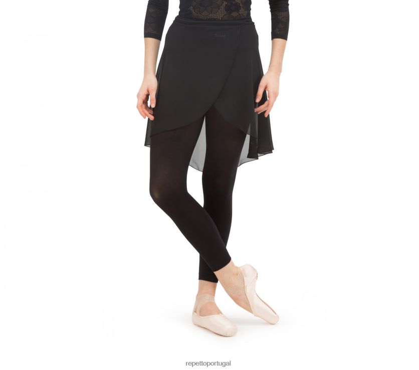 a saia feminina faz parte do traje da dançarina. colocado sobre o collant, pode ser usado cruzado ou amarrado de ponta a ponta na lateral com os cordões. o chiffon semi opaco dá uma ideia do posicionamento dos quadris e permite ver o trabalho das pernas. transferência transparente do logotipo do repetto.