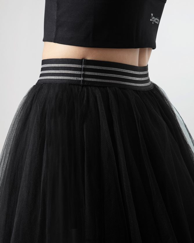 inspirada no icônico tutu repetto, esta saia fluida e arejada representa a versão urbana da saia tutu de dança. confeccionado em tule fino e esvoaçante com forro opaco, sugere todos os movimentos para uma silhueta leve e moderna.